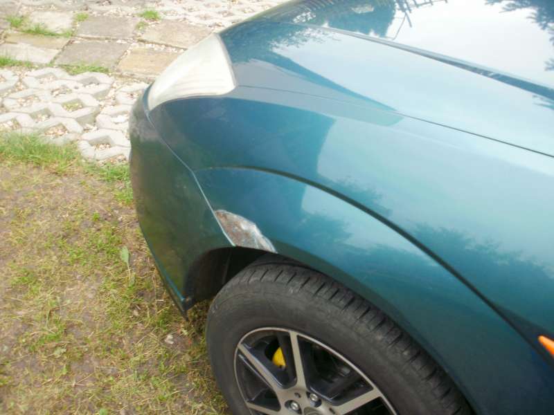 Na pravem blatniku foto c.1 byla nastesti jen povrchova rez a slo to krasne zbrousit az na plech. Pak jsem to striknul zinkem,aby to znova nerezlo,pak plnicem pro vyrovnani nerovnosti,ktery pak prelestim smirkem 800,pak dam zelenou metalizu a bezbarvy lak,tak snad to bude OK.