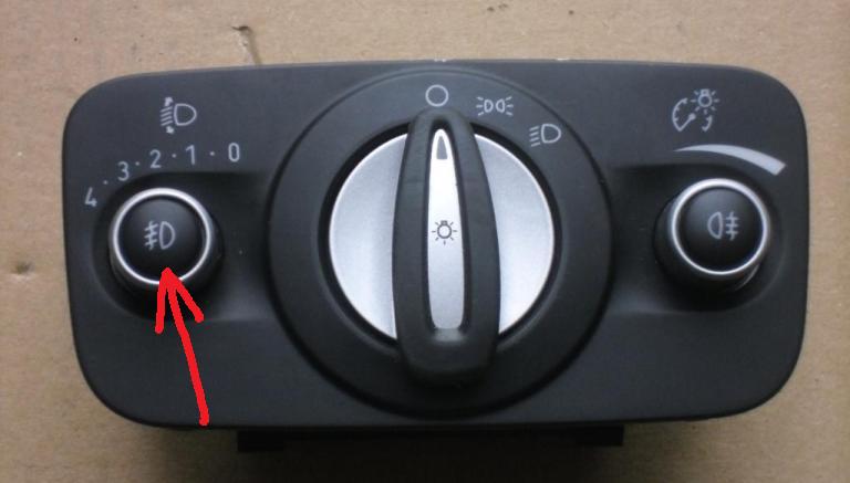 1. ovladac svetel s tlacitkem prednich mlhovek - shodny s predFL (cervene podsviceni, spravne ma byt modre)