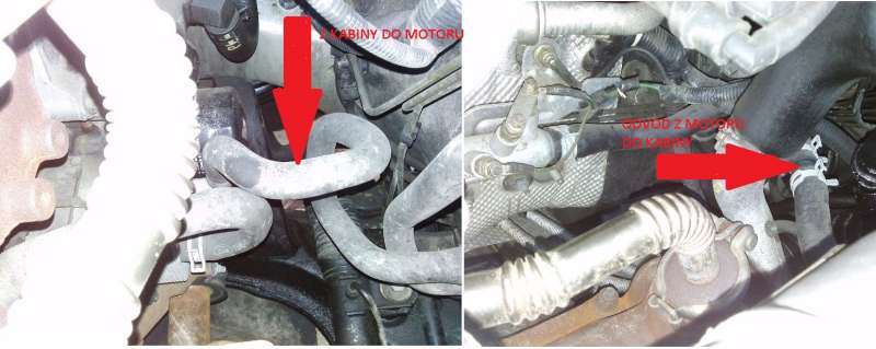 nevím které hadice jsou malý okruh. Mám to správně dle foto? Napojil bych to místo té spojky, alespoň na zkoušku? Nemělo by vadit, když první bude topení v kabině a motor až pak?
