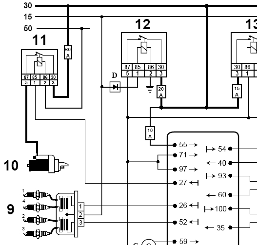 Zkus si zkontrolovat znovu odpory podle obrazku vn bloku 9. Opravdu obsahuje vn blok dve samostatne indukcni civky a odpor mezi strednim a jakymkoliv krajnim kontaktem musi byt shodny. Podle toho, co jsi psal, tak je mas ruzne a to ukazuje na vadny blok a ne ridici jednotku.