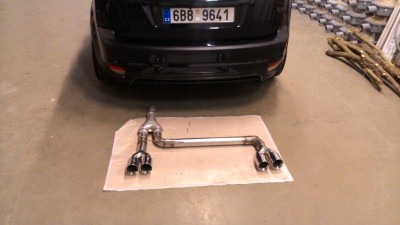 Mnou zvolený Duplex je vyveden pod difůzorem a to z důvodu, že v difůzoru SPORT jsou vodorovně vedeny lamely. Pokud bych u krajů vyřízl dvě kulatý díry pro koncovky, bylo by to jak pěst na oko. Holt to není ST dif.