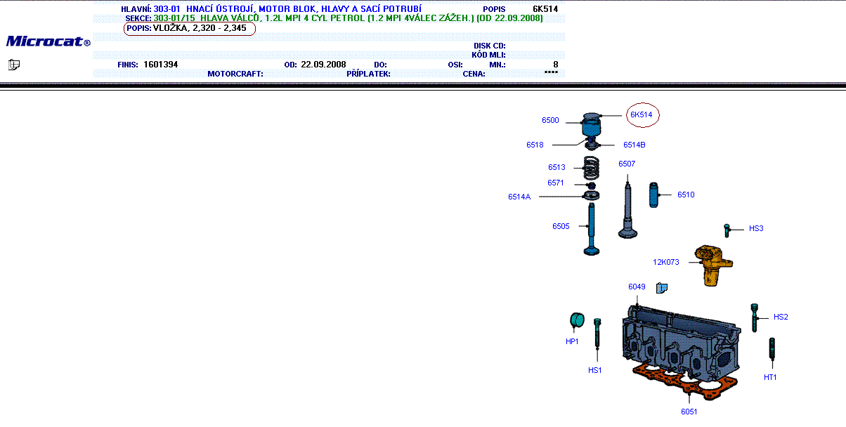 Pokoušel jsem se najít bližší info o motoru 1.2 MPI 51Kw a z nákresu Ford Microcat je patrné že vetily májí vymezovací podložky díl 6K514, a to celou řadu od 1,990 mm do 3,320mm. Tak začíná být jasné, že FORD v ETISu překlep nemá, a přijímací technik ví o těchto motorech kulové.