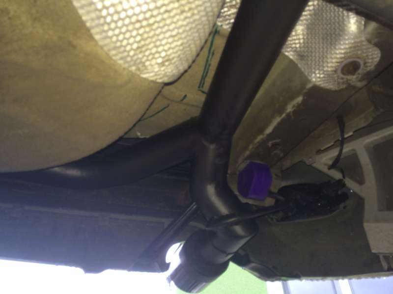 Použil jsem 4ks 90° kolen, 2m dlouhou trubku ⌀ 60mm, 50cm kulatinu ⌀ 10mm pro úchyty, 2ks koncovek ⌀ 90mm, výfukovou spojku, 2ks modrých powerflexů (musel jsem na jednom ořezat rohy a zúžit o cca milimetr aby se vešel do otvoru v nosníku) a 2ks 400ml černého spreje na výfuky.