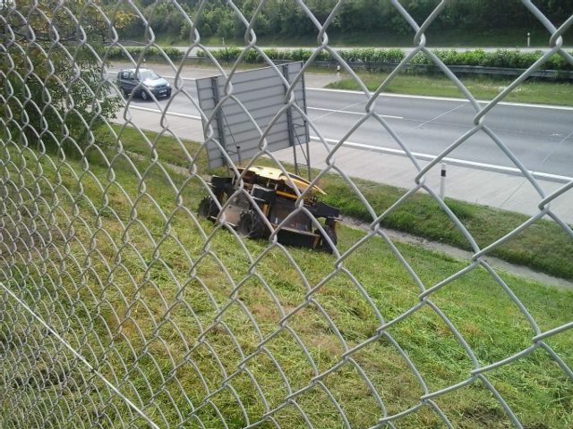 Tráva je založena v tkanině překryta ocelovou sítí, vše řichyceno skobama a ty vylízají. Ideál k sečení a ke shrabání :nunu: