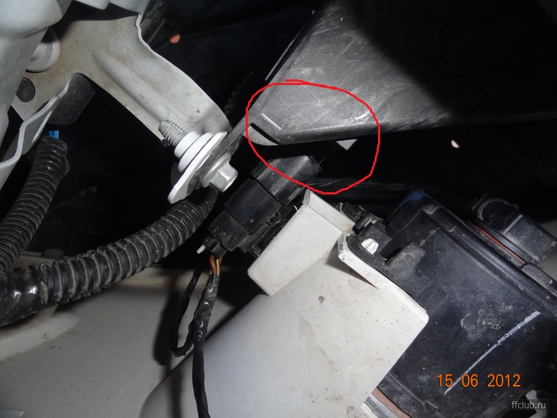 Konektor na kabel prednych senzorov sa nachadza pod prednym vodicovym svetlometom: