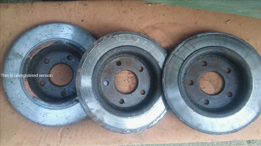 Provedena kontrola brzd. Předek je OK, kotouče hladké a rovné, brzdové destičky ještě 5-6mm. Ale zadní kotouče nicmoc, přidřené třmeny. Pokusím se je zarovnat a pokud se nevejdu do tolerance, nechám dát nové, plus destíčky a oprava třmenů.