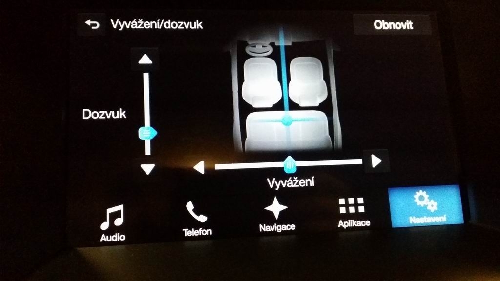 Na foto mam vyvazeni dany uplne dozadu a 3klepnuti zpet, pak na zadnich sedadlech uz clovek trochu slysi hudbu, ale i tak ji slysim spise zepredu. Pokud dam vyvazeni na 2 klepnuti odzadu, slysim hudbu na zadnich sedackach ze zadnich repro, coz mi pride hodne divne...