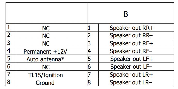 Konektory "B" jsou pro puvodni radio - jeden ma na starost napajeni (trvale +, kontra, spinane plus po otoceni klicku, osvetleni tlacitek) a druhy je pro reproduktory.