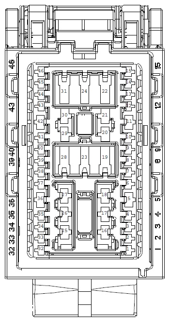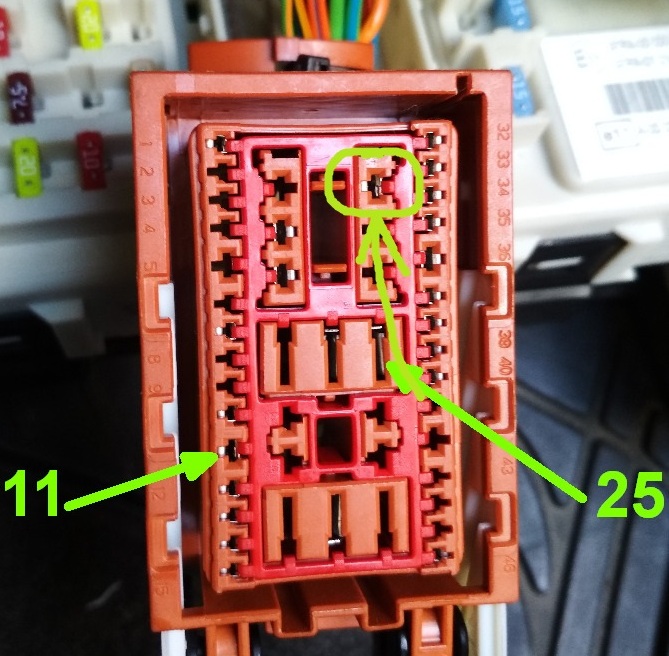 mezi temito piny je napetovy impuls pro odemceni/zamceni zamku ve dverich ridice, resp. zamku vicka nadrze