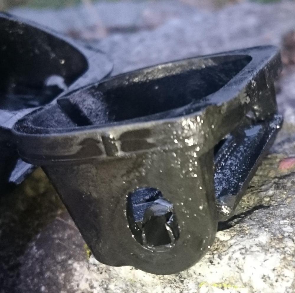 Opotřebená klapka bez zesíleného uložení.