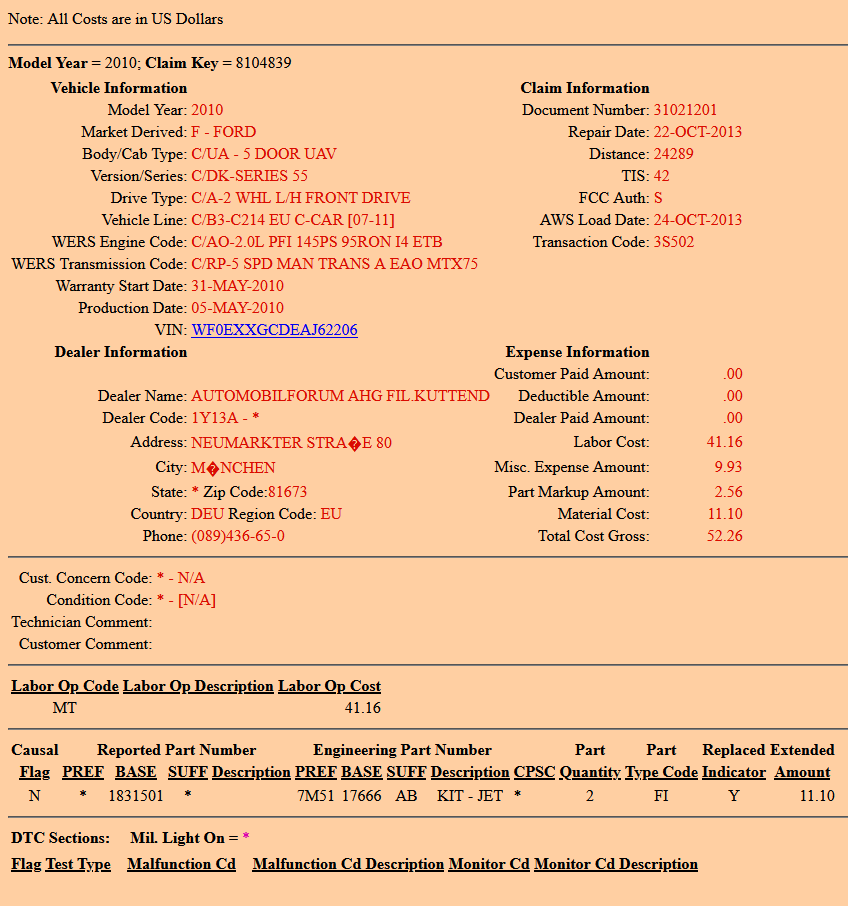 Zdravím, ve čtvrtek se jedu mrknout na jednoho Focuse, udávaný nájezd 217000km, a poslední záznam z 2018. Mohl by mi někdo prosím mrknou na WF0NXXGCDN4A77132. Děkuji.