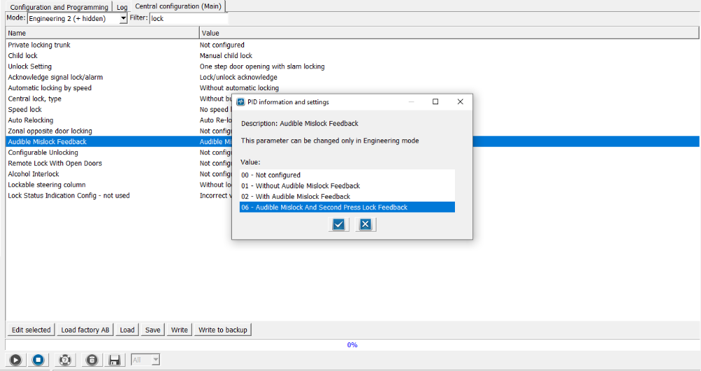 tak jsem hledal a nasel jsem v centralni konfiguraci parametr Audible mislock feedback (147), ktery ma volby :