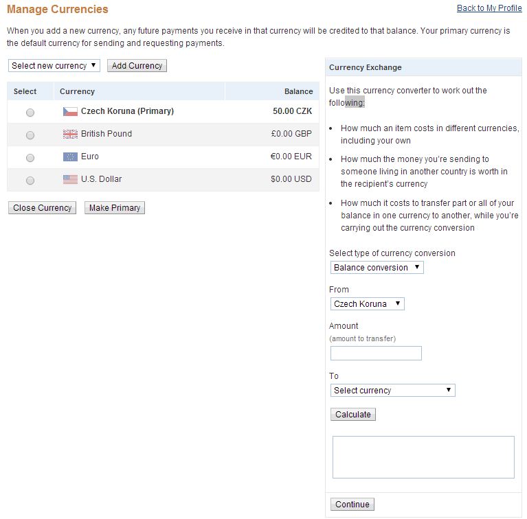 Tu je printscreen z PayPalu, podla mňa musím vždy nastaviť ako primárnu menu tú v ktorej chcem platiť. Napr predajca predáva v librách, tak nastavím libry ako primary. PayPal si stiahne libry z mojho účtu, takže moja banka sa postará o konverziu. Dúfam že to píšem správne