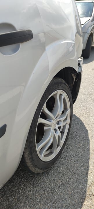 Přední levé světlo je KO, kapota dostala taky trošku, přední narázník je KO a dále nevím. Kvůli přednímu blatníku, který se nárazem posunul trošku dozadu se blbě otevírají a zavírají přední dveře u řidiče a zadní jsou na tom ještě hůř. Dveře od kufru KO, zadní nárazník KO a taky levý zadní blatník je KO a myslím, že se určitě nějakým způsobem hnulo i levé zadní kolo, protože je blíže blatníku než to kolo napravo, které je asi v pořádku.