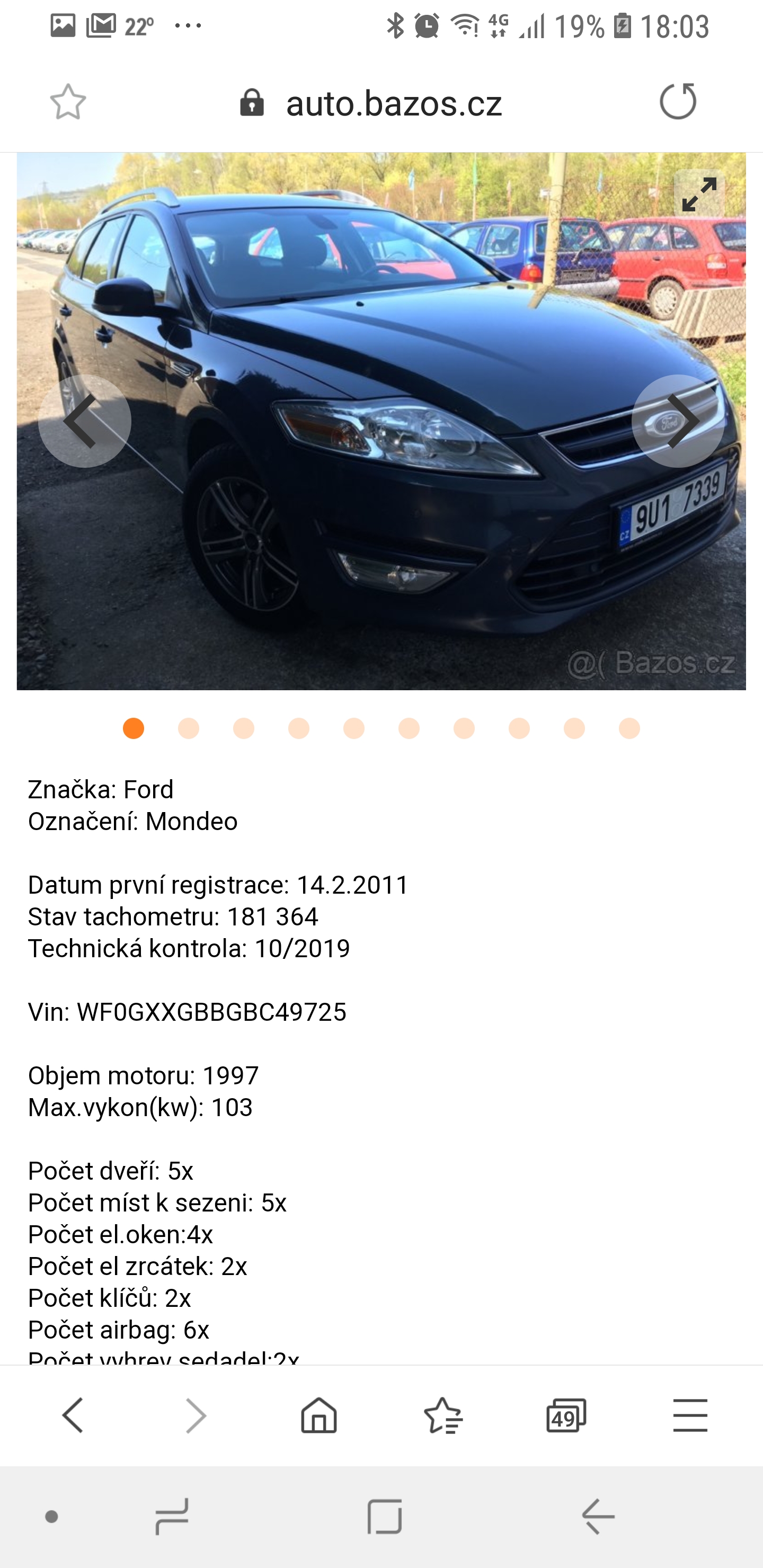 Tak jsme pánovi volal, a ten mi vysvětlit, že to je komisní prodej a auto má certifikát Cebia