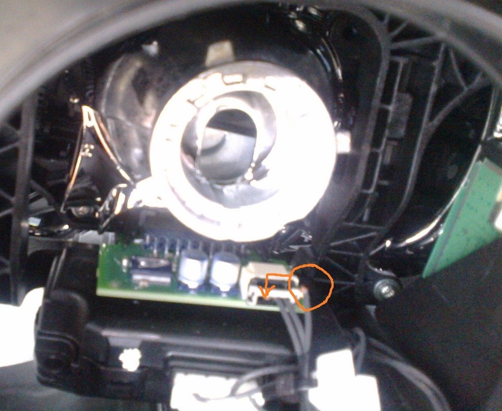 - otvory pro pristup k zarovkam jsem nasel krokovy motorek pro horizontalni pohyb s ridici jednotkou: motorek ma jiny obal v levem a pravem svetle, vyndat se mi ho nepodarilo (bez rozlepeni svetla) ... vymenil jsem tedy jeho ridici jednotku ... nepomohlo to