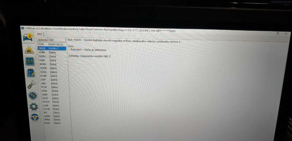 Vcera jsme dorazili domu a ihned jsem to napichnul na ForScan, chybu to vycetlo: