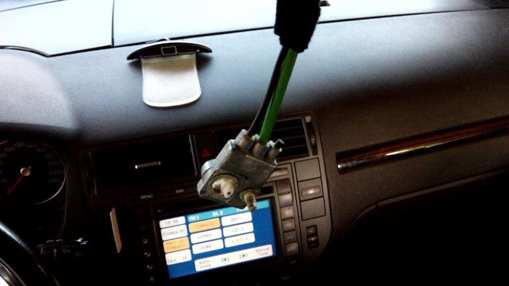 Ale, zatial len krátkym skúmaním som zistil, že kábel antény ide od spodku A-stĺpika niekde poza palubovku - je to tak? Myslel som, že ide už hneď za budíkmi, ale tam som ho nevidel ani nenahmatal. Keďže má kábel na sebe upevňovacie spony a kolíky do plastu, tak odpadá možnosť vytiahnuť ho drátom a rovno naň namotať nový kábel.