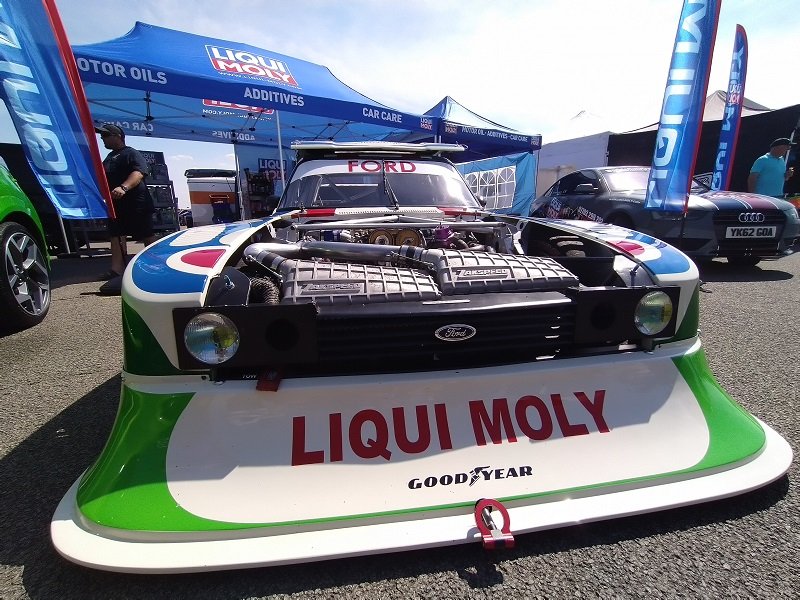 Jízdy pokračovaly během celého dne, takže jsme šli dál po okruhu sledovat, co vše ještě můžeme vidět. Za zmínku stojí určitě stánek hlavního sponzora Mountune. Stály se tam velké fronty v turniketech na prodej dílů - a že to tam chvíli vypadalo, jako kdyby ty věci dávali zadarmo. Za menším hloučkem lidí - závodní verze Ford RS200. Jdeme dále - nacházíme místo se stánky s občerstvením a autokosmetikou. Před ním stojí stará hranatá Fiesta - s motorem YB Cosworth a Turbem T04, přestavěnou na zadní náhon. Majitel patrně šílenec. Asi po další půlhodině procházení mezi zajímavými kousky, které byly různě zatoulané - jako třeba pár Focusů RS MK1, které nestály u hlavního dvojřadu. Co jsme tak pochopili, tak jsou určité zóny, kde jsou určitá auta pospolu a pak ještě zóny, kde jsou kluby. Takže proto se kolikrát objevily auta různě rozházená. Ale bylo to svým způsobem takové pestřejší a vlastně dopředu nikdo nevěděl, co tam bude stát. Po chvíli vidím první Sierru RS Cosworth v bílé barvě a 3dveř s ploutví. Není to RS500, ale první civilní třídveř. Vedle něj Saphire RS Cosworth. Oba kousky přepečlivě umyty a naleštěny. Kousek od těchto krásných kousků procházíme místem, kde byla burza s díly, stánky s různým oblečením, nálepkami, kosmetikou, díly, modely autíček až po občerstvení. Na chvíli odběhnul Mates - ikdyž tam nebylo tak přelidněno jak jsem čekal, během pár vteřin byl pryč. Za chvíli se objevil, drapnul mě a že se asi poseru! - No skoro ano, Ford Capri, ale překopaný dobovým týmem DRM (předchůdci DTM) Zakspeed. Takže na place stál Ford Capri Zakspeed Turbo. Upřímně bych tohle čekal spíše mimo Anglii, ale tohle mě dostalo! Byly dvě varianty motorů - 1,4 Turbo 480koní 9200 ot/min a 1,7 Turbo něco přes 600koní a stejně točící se nesmysl...Přiznám se, že nevím která jednotka v tom byla, ale bylo to šílené, vidět to na vlastní oči a z blízka. Auto z trubek o váze kolem 800kg s takovým výkonem. Masivní bodykit a pod dlouhou kapotou malý brutální mixér, který ve své době neměl konkurenci. Takže zase zpět nohama na zem a jde se dál. O kousek dál nám zase předvedli angličani zlaté ruce a lidovou tvořivost. Focus RS MK2 Cabriolet... To už se po sobě díváme, jestli nemáme úpal, ale tam to asi krom nás 4 nikoho ze židle nezvedalo. Pomalu jsme dostávali hlad, takže jsme se odebrali směrem ke stánku. Po cestě nacházím první Sierru RS500 Cosworth v originál verzi, ale místo T04 bylo turbo Borg Warner. Přicházíme ke stánkům na anglický cheesburger, který byl snad asi nejlepší, jaký jsem kdy jedl, až na uřvanou prodávající, která byla jako papoušek a v okruhu stánků jsme slyšeli jen ji a její " Next please! " . Nicméně sedímena u stolu a díváme se na Mustang Shelby GT500 Eleanor...Po jídle jsme pokračovali v procházce dále. Na jednom place bylo asi 20kousků Fiesty ST200 v šedé barvě. Po cestě vidíme palouk, kde z dálky září oranžová asi 80ks ST Focusů MK2 a MK3, nacházíme Escorty, Mondea, Escorty ve verzi kurýr, Sierru pickup. Mondea ST220....bylo toho tolik, že se to nedalo ani všechno zapamatovat a fotit.