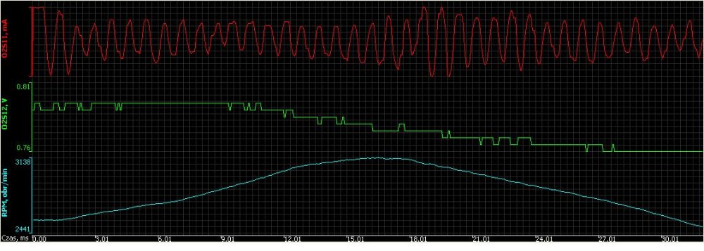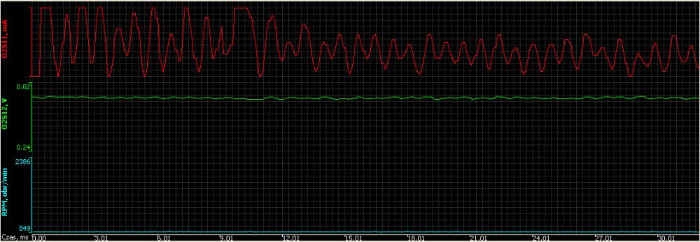 Motor byl zahřátý 10km jízdou, pak 5 minut neběžel, a těsně po nastartování grafy vypadaly takto