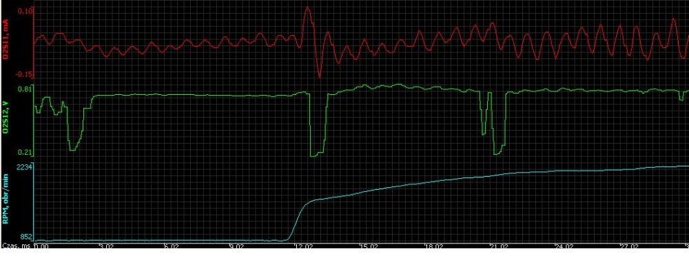 Tvé grafy jsem už viděl, pidy EGO11 a EGO12 tam nemám. Sondy jsou jiné, první má 5 drátů, druhá 4. Na FFII jsou zřejmě stejné, mají i stejné konektory. Na FFII jsem kdysi jednu sondu měnil, měla chvilkové výpadky měření a motor občas padal do nouzáku.