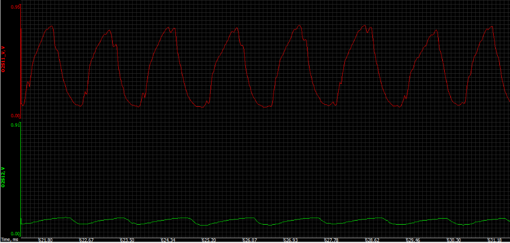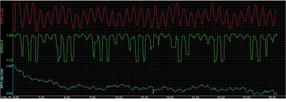 Motor byl zahřátý 10km jízdou, pak 5 minut neběžel, a těsně po nastartování grafy vypadaly takto