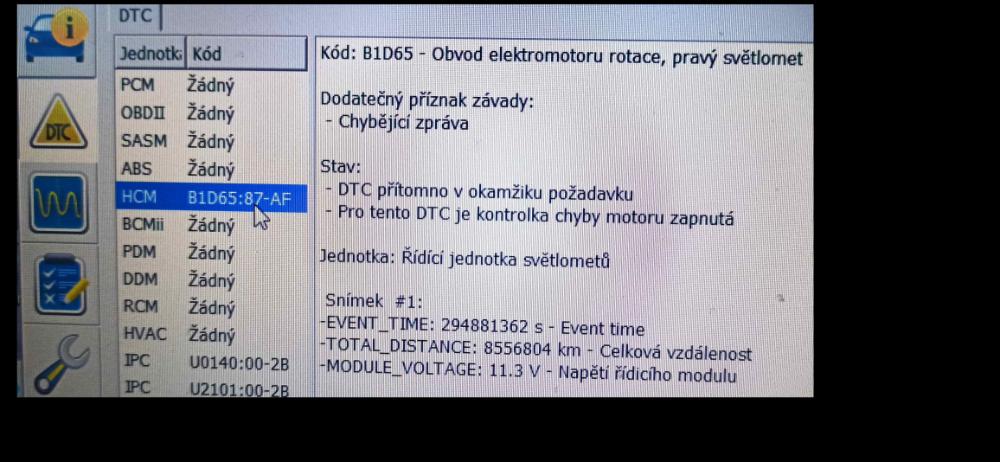 A vidím jeden rozdíl, při nastartovaním motoru, je u levého světla stále +- 11,5 V u řídícího modulu (pravé při nastartovaném motoru má 14,3 V)