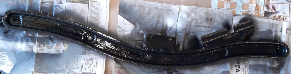 Jinak jsem pak ještě provedl "sportovní odlehčení" té podvozkové příčky, která měla na sobě vrstvu různých nátěrů, které se už nechutně odlupovaly. Když je namontovaná na autě, tak se k ní blbě může, takže při předchozích aplikacích ochranných nátěrů nebyla nikdy pořádně očištěna. Teď jsem si s ní trochu víc vyhrál.