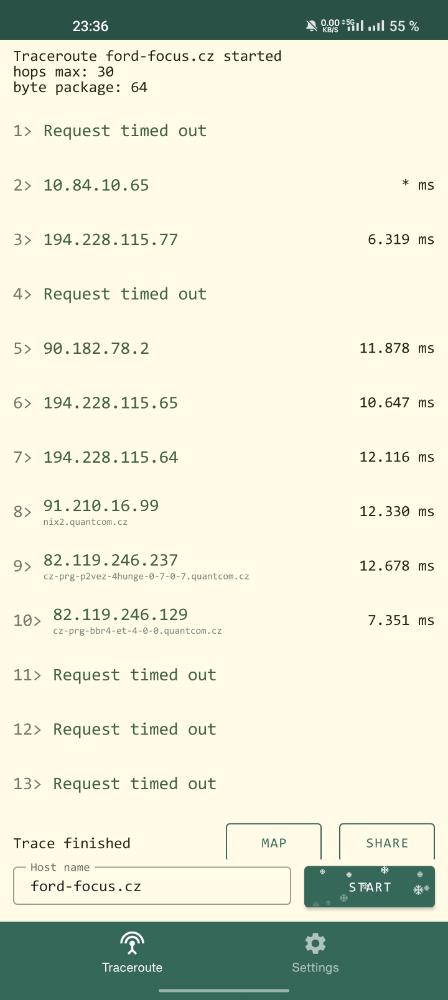 kdyz to nejde, tak zkuste traceroute na ford-focus.cz ... kam az se dostanete? nebo se to ani nespusti kvuli neznamosti domeny?