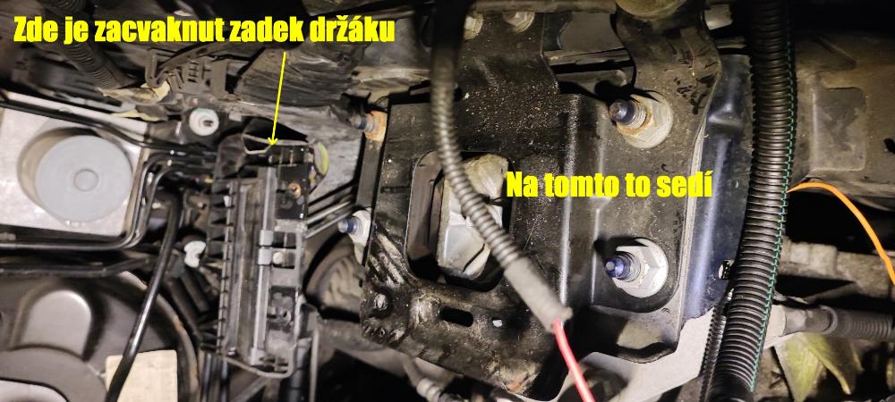 3.) Držá abeterie vyšel jen tak, musí být takto na druhé straně a těsně míjí ten spodní šroub.