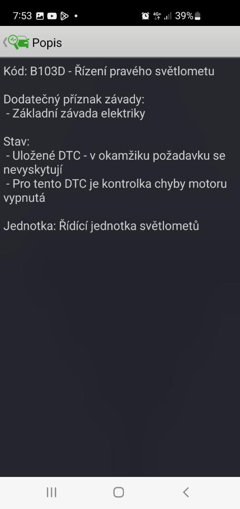 Dnešní diagnostika potvrdila, že chyby tam jsou, bohužel. Teď teda nevím, jestli má smysl zkoušet jinou řídící jednotku, nebo rovnou shánět světlo. Po vymazání zůstala zatím jen chyba B103D - řízení pravého světlometu.