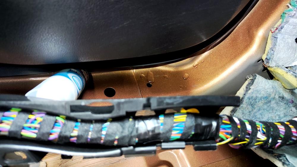 Dnes jsem si udělal fotku napřed od spolujezdce, abych vyloučil, že to tam kápne po otevření dveří... Přijde mi to jako kapky z vrchní části rámu dveří, nebo to jde někde kolem těsnění, což moc nechápu. Utřu to po zavření zevnitř a budu sledovat, jestli tam zase budou nebo ne.