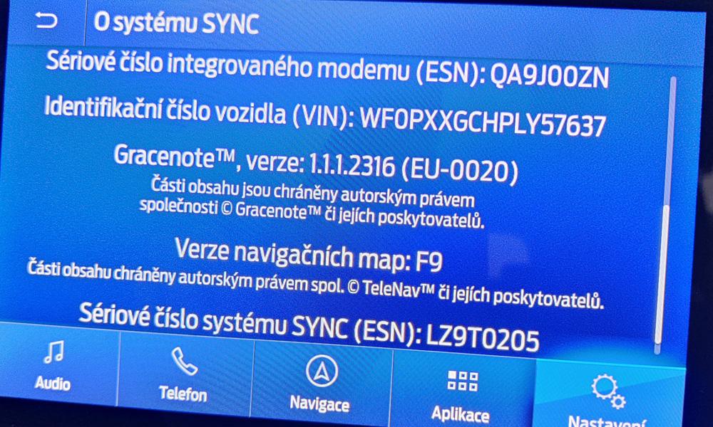 Nevím v čem je zakopaný pes, ale za žádnou cenu nemůžu v telefonu aktivovat FordPass. Už jsem to telefonicky řešil i s infolinkou Fordu. Dělal jsem to i předtím, kromě posledního kroku otevírání a zamykání dveří. Jak vlastně aktivace probíhá, přes wifi, bluetooth. Včera jsem si SYNC aktualizoval přes USB na verzi z fotky. Zajímavé, že aktualizaci přes WiFi mi to nenabízelo.