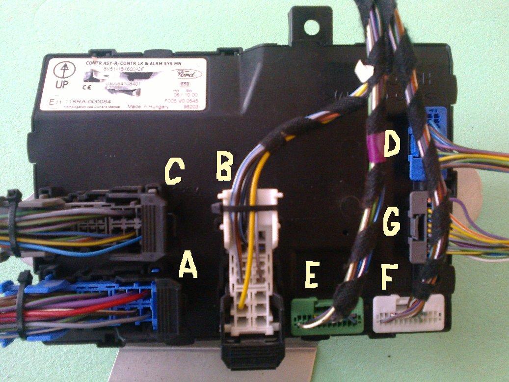 - pokud konektor s kabelem chybi, pouzijeme kapotovy konektor napr. z FF2 se dvema piny a vedeme dva draty pod svetlo, kde jeden ukostrime a druhy pres gumovou pruchodku pred ridice dotahneme k jeho noham, kde ho zapojime jako samici do konektoru C211 a odtud (pokud neni priprava) pokracujeme az na BCMi pred spolujezdce na konektor D pin 10