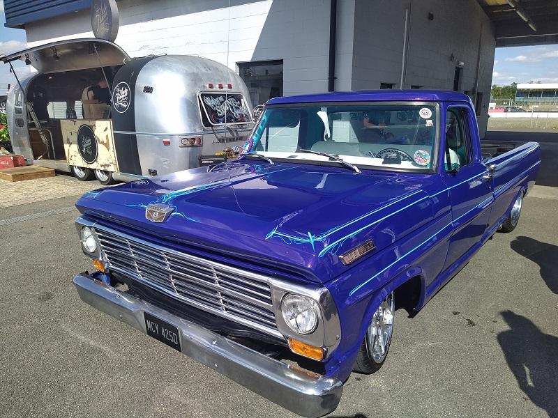 Bohužel modrý ovál ten den na trati neměl zrovna na růžích ustláno. Mezitím co jsme obhlíželi F150tky, tak na trati došlo k incidentu, kdy za jízdy vzplála Fiesta ST180. Byl to takový hodně nepříjemný pocit a okamžik. Co jsme ale byli překvapení, jak rychle u něj byli traťáci s hašením. Kapotu otevřeli, nebo spíš rozevřeli jako konzervu páčidlem a práškovým hasivem vyšplíchali celý motorový prostor. Bylo celkem vidět a cítit z diváků a lidí kolem takový určitý soucit, k tomu autu se ještě vrátím později. Jako takový bonus program byla mezi jízdami asi jednou za dvě hodiny drift show - osobně jsem nikdy této moderní zábavě nepřišel na chuť, ale rozhodně je to obdivuhodné. Takže jsme šli odpočinout na tribunu a dívat se, co budou jezdci předvádět. Auta byla různých značek, ale našly se tam i tři fordy, a aby to nebylo jen tak něco - byly to dva escorty mk1 courier...Na jednu stranu hodně vtipné, lítat pickupem na 13-ti palcových kolečkách bokem, ale fakt jeli veškeré zatáčky na limit možností a od gum se kouřilo dokud to auto nejelo rovně, fakt nás to zaujalo.