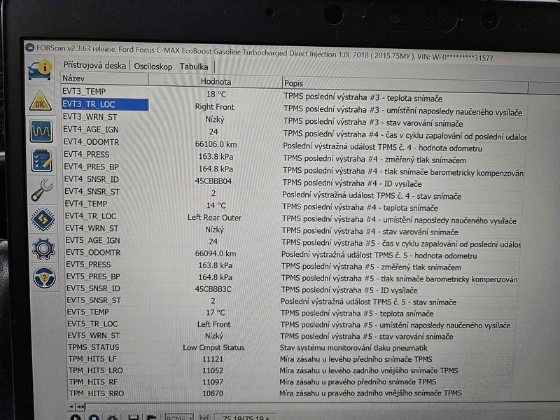 Když jsem zadal TPMS, vše vyznačil tak jsem obdržel tato data viz přílohy