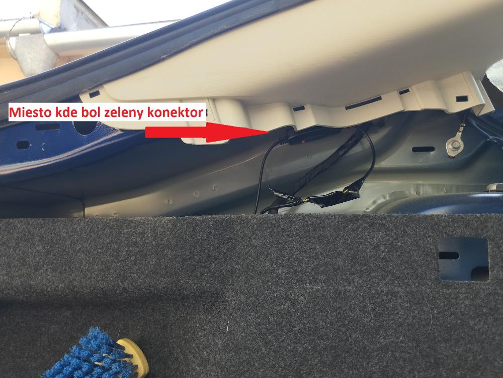 Mam hatchback a tak som zvolil moznost pripojenia cez zeleny konektor, ktory som mal v kufri. Povodne som planoval zapojit priamo na APIM ale na zeleny konektor mi to prislo jednoduchsie a hlavne ak by nieco zlyhalo aby som si neodpalil celu jednotku. Zeleny konektor som odstrihol a spojenie kablov som realizoval zmrstovacimi buzirkami s cinom, kde mi stacili dve velkosti, biele na video kable a cervene 2,4 mm na kable s napetim a kostrou. Schema zapojenia po odstrihnuti zeleneho konektora a po odstrihnuti CINCH video konektora : Na kamere boli dostatocne dlhe kable k cuvaciemu svetlu. Kable ku svetlu som taktiez natvrdo prestrihol asi cca 10 cm od konektoru a spojil s kablami napajania kamery cervenymi buzirkami a este prelepil aj izolacnou paskou. Treba si pre istotu odmerat kde je +12V a kde kostra. V mojom pripade : WiFi transmitter som pripevnil elektrikarskou stahovacou paskou a este prelepil izolackou. WiFi receiver som prilepil obojstrannou paskou na povodny klip so zeleneho konektora a zacvakol na miesto kde bol zeleny konektor. Forscan-om som povolil kameru. A takto vyzera vyhlad z kamery, chybaju parkovacie ciary ale bohuzial Cina, v popise boli ale v realite nie. Vyhlad z kamery spolu so zadnymi senzormi. Prenos obrazu cez WiFi na screen radia je po zaradeni spiatocky minimalne oneskoreny (odhadom cca 0,3 s). Montaz mi trvala cca 5 hod ale minimalne o hodinu menej kvoli neproduktivnemu casu ( cigareta, WC , vahanie ci kable strihat alebo iba odblankovat, vypadnutemu klipu zo zadnej listy a zisteniu ze chyba az po nasadeni atd a pod.) Mne bolo lepsie, ze vdaka pomoci svagra som tom mal jednoduchsie, pretoze obcas som potreboval tri ruky.