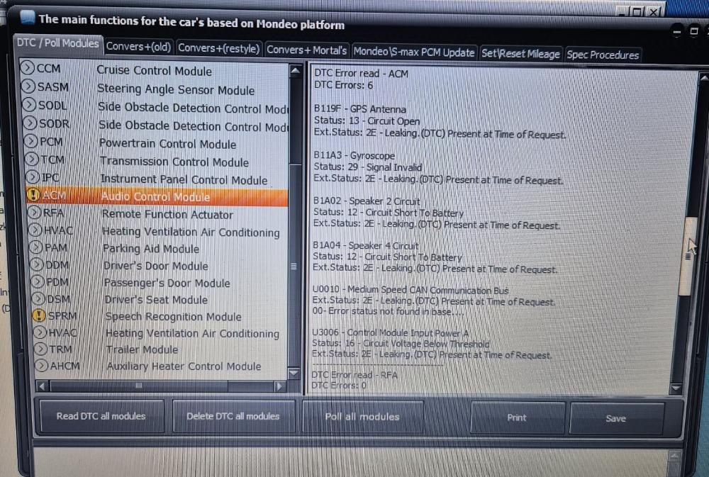 Mam problem s mondeo MK4 2012 2.0 103. Stale mi nieco vyžiera bateriu, ktora bola asi 10mesacna. Par krat som uz neotvoril ani dvere. Tak som kupil novu bateriu, no bez zmeny. Az vtedy som zacal merat spotrebu zamknuteho uspateho auta, spotreba je dost vysoka od 600mA do 1800mA... Spravil som diagnostiku cez FOrd IDS a UCDS, pripajam chyby, ktore mi to ukazuje. GPS antenu som vymenil za novu FAKRA, kedze povodna mi ukazovala somariny, casto krat vypadol signal. Nova je stabilna, vsetko OK, akurat taktiez ukazuje chybu.