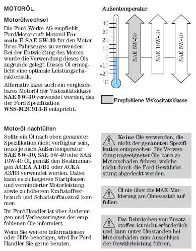 specifikace Ford je jen doplnenim ACEA - vyrobce oleje si nechal u Forda certifikovat olej a Ford mu pridelil prislusny kod specifikace. To vsak neznamena, ze se do Forda nesmi nalit jiny olej. Olej ale MUSI splnovat predepsanou vykonovou uroven dle ACEA! Citace z clanku pana Ing. Cerneho: