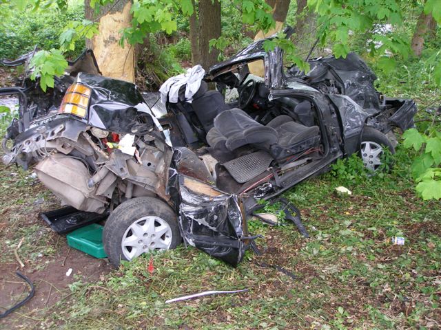 Včerejší (20.5) nehoda vozidla Ford Scorpio. Bohužel čtyři mrtví a jeden těžce zraněný.