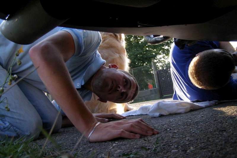 ale v pátek sem měnil vlnovec a měl sem je po dobu srazu nevkusně na stranu :idea: :wink: , no a nedalo mi to tak sem lehl pod auto a ladil a v tom nás napadla ta parodie :idea: :mrgreen: