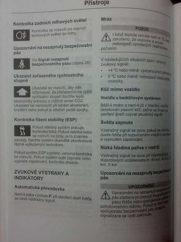 Žlutá hvězdička (vločka) SKUTEČNĚ svítí při teplotě 4°C a méně. Údaje o teplotě BC zaokrouhluje. Pokud si v menu BC (prům.rychlost, prům.spotreba, teplota a dojezd) najedeš na teplotu, ukazuje to s přesností na půl stupně. Čili polopaticky - pokud jsou na displeji 4°C, v menu BC může být 4°C nebo 4,5°C. Odzkoušeno empiricky - zajímalo mě, proč při 0°C občas svítí žlutá vločka a občas červená - občas totiž bylo 0°C a občas +0,5°C :mrgreen: