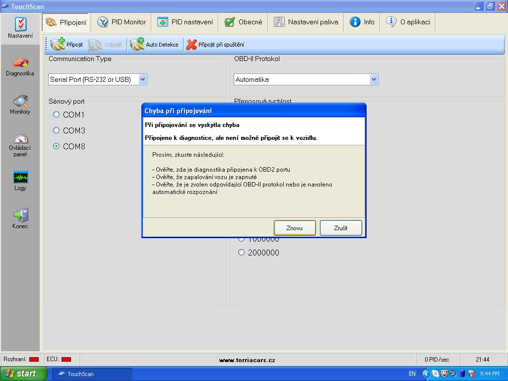 Tak mi to nedalo a stejný kabel jsem vyzkoušel s jiným programem konkrétně TouchScan ver. 2.7.1.2 a chyba se o5 opakovala - nelze spojit s ŘJ motoru.
