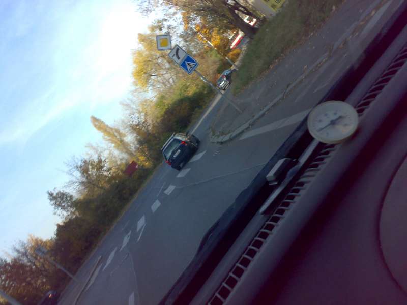 Chvilku před 15h si to hasil tmavě modrý FOFO kumbál s podložkama a příčníkama na střeše ulicí