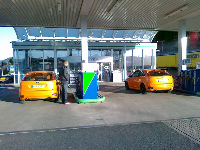 Ford Focus II 2.5T ST, 3 dv.,Electric Orange byl, je Golf GTI VII Performance Pack