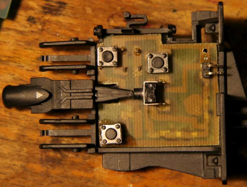 - posunuté tlačítko MODE - vyměněno za tlačítko s delším čudlíkem a zabroušeno na potřebný rozměr