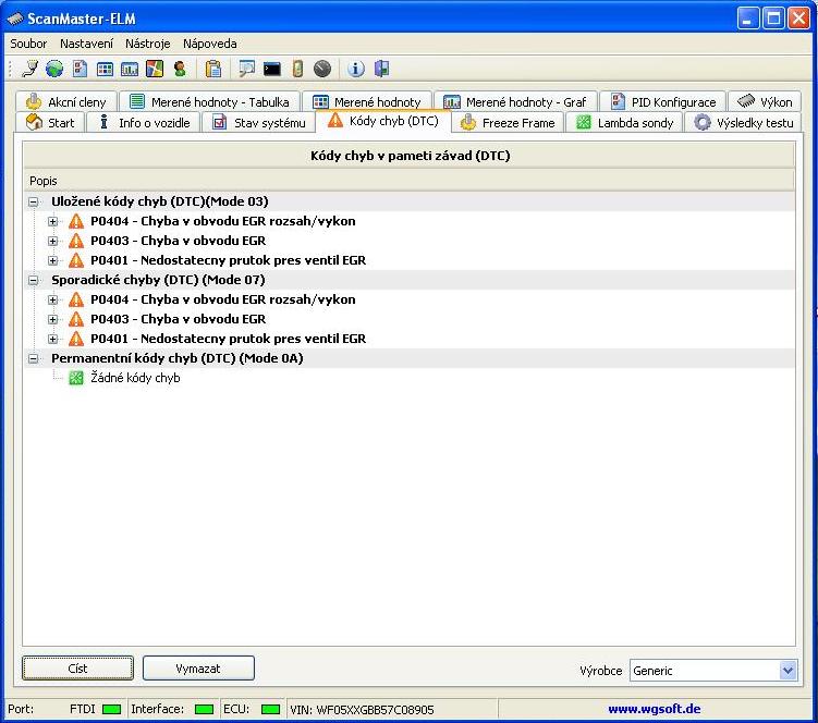 Smazanim se tady podle me nic nevyresi. Sice kontrolka prestane svitit, ale tim, ze se chyba objevuje jako sporadicka, se brzy objevi v "Ulozene chyby" a kontrolka se znovu rozsviti. Zameril bych se na ten EGR ventil.zbysek_2010 píše:Konečně s novým kabelem diagnostikuji. Chyba P0404,P0403 a P0401.