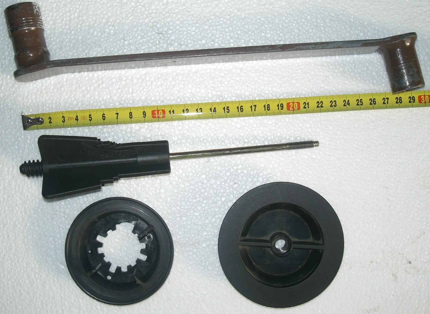 Ten originální klíč je pěknej aušus, pořídil jsem teleskopický z kvalitní oceli. Mám ho přichycený gumami co drží složený trojúhelník v boční skříňce. Ale možná to je u hb jinak.