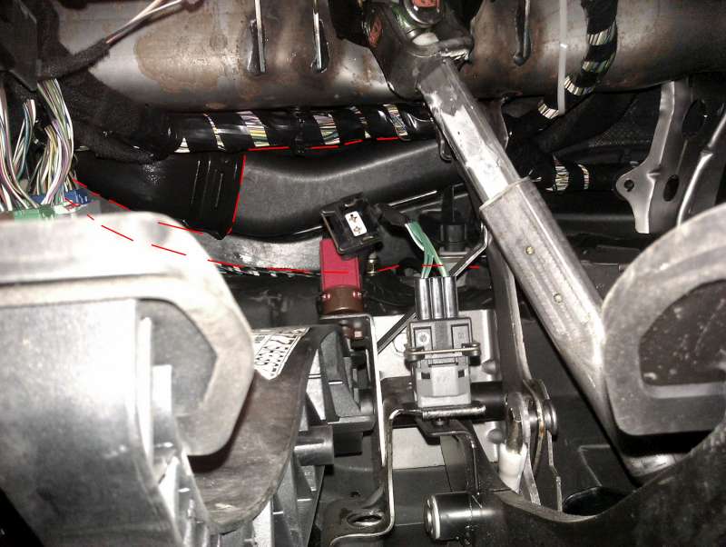 Tak jsem k pedálům strčil hlavu co nejblíž, ale průchod nahoru ke sklu teda nevidím. Je tam takový černý kryt a nic vidět není, ani od řidiče ani od spolujezdce. Mluvíme o Mondeu Mk3?