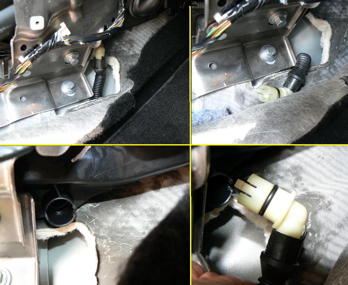 Následně vyndáme kolínko pootočením ve směru hodinových ručiček (je tam jen nacvaklé). Nyní máme otvor, do kterého zasuneme hadičku z přípravku na čištění klimatizace a celý obsah, který vytvoří pěnu tam nastříkáme. Přesný návod jak postupovat je vždy uveden na obalu a líší se dle konkrétního přípravku. Po vystříkání výparníku a následnému počkání, než přípravek pomalu odteče, se můžeme kochat svěžím vzduchem